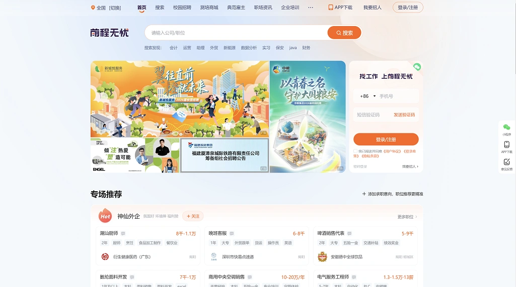 51job(前程无忧)是中国领先的综合性人力资源服务平台和招聘网站,面向求职者和企业客户提供职位发布、简历库、猎头、校招、培训、测评、人事外包等全套 HR 服务。