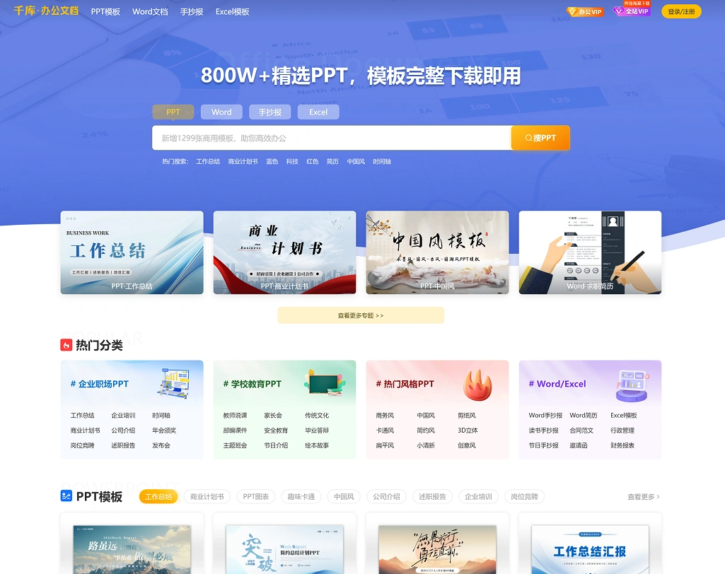 千库网的 PPT 模板栏目是一个非常丰富、便捷的资源库,适合多种用户快速获取高质量幻灯片模板与相关素材。
