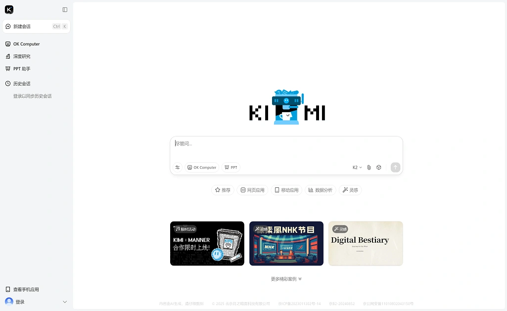 Kimi(kimi.com)是 Moonshot AI 提供的一个以“对话式 AI + 思考型大模型(K2 系列)+ 多模态/代理工具”为核心的在线平台,面向普通用户与开发者,强调超长上下文、工具化推理与多步骤自动化任务,适合需要深度检索、复杂推理和自动化内容生成的场景。