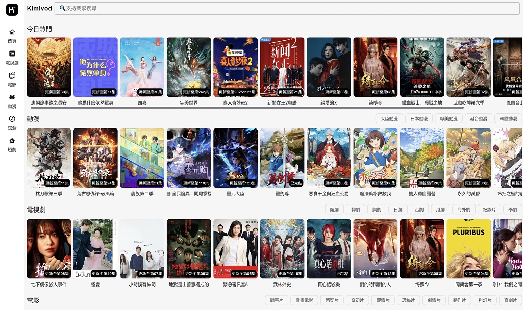 - Kimivod 是一个在线影视平台,提供 “电视剧、电影、动漫、综艺、短剧” 等多种类型的视频内容。