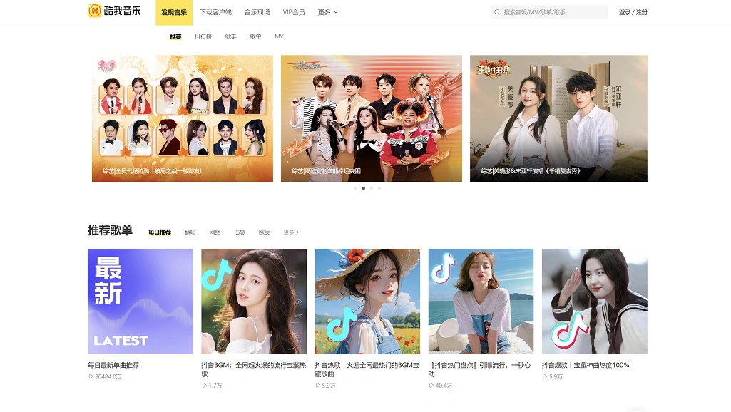 - 在线听歌:支持网页端与移动端在线播放,分类齐全(流行、摇滚、古典、影视原声等)。