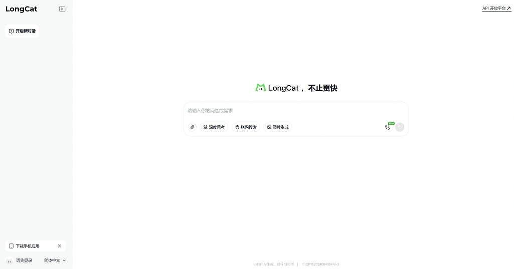 LongCat 是一个由美团推出的、功能强大且通用的大语言模型 + AI 服务平台。它融合了先进的 MoE 架构和开放策略,既能满足技术人员/开发者对于高性能 / 高效率 / 灵活部署的需求,也能为普通用户、内容创作者、学生、企业等提供多场景、多功能的 AI 辅助 —— 无论是写作、学习、开发、内容生成、对话、知识查询,甚至复杂任务与工具集成,LongCat 都力图成为一个「通用 AI 助手 + 基础设施 / 平台」。