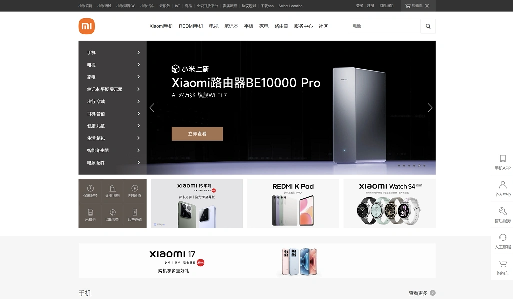 - 线下门店关联:网站也提供“线下门店”入口,例如“小米之家”及授权体验店/专区。