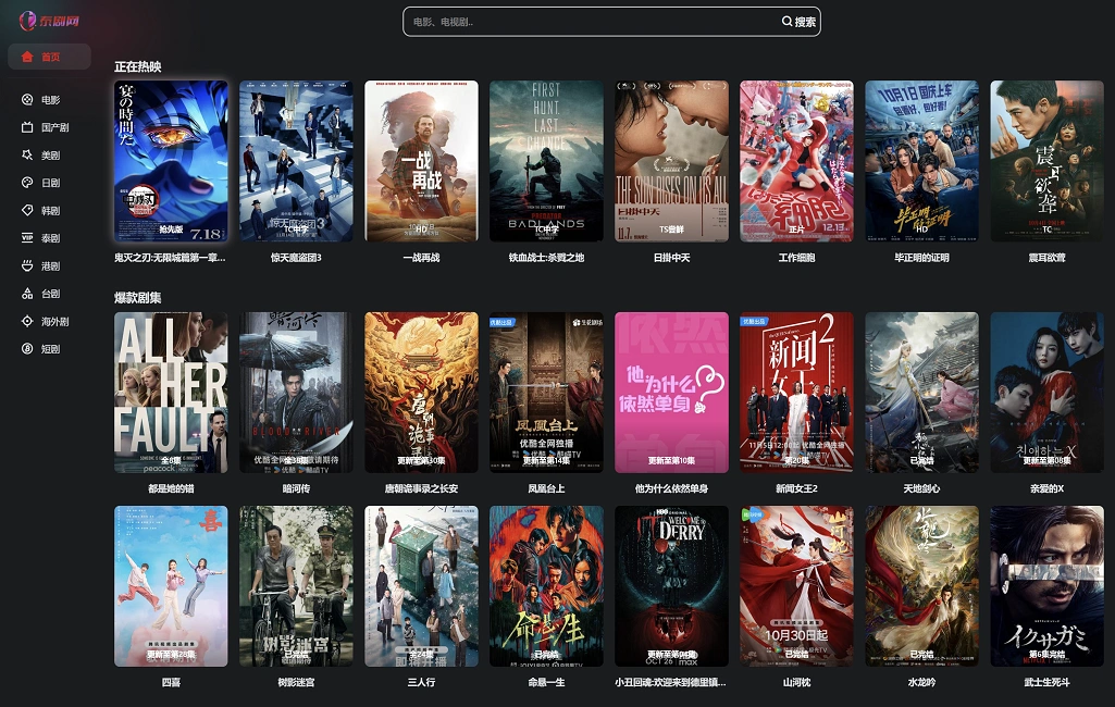 - 各类剧集分类(电影、国产剧、美剧、日剧、韩剧、泰剧、港剧、台剧、海外剧)