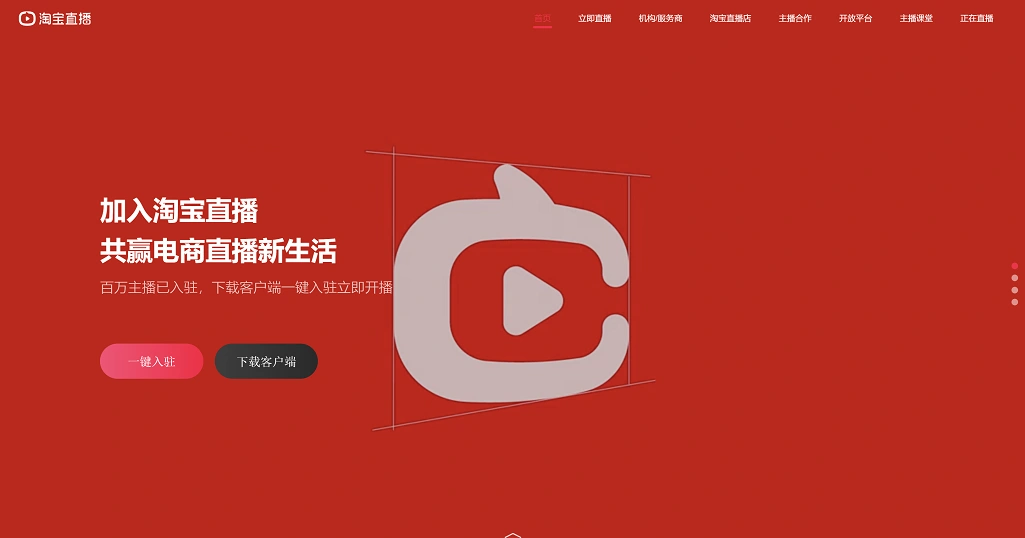 淘宝直播官方网站,主要与“主播工作台 / 直播工具”及直播间管理、推流与回放等功能相关联(即面向想在淘宝平台做直播的商家、主播与技术对接者)。