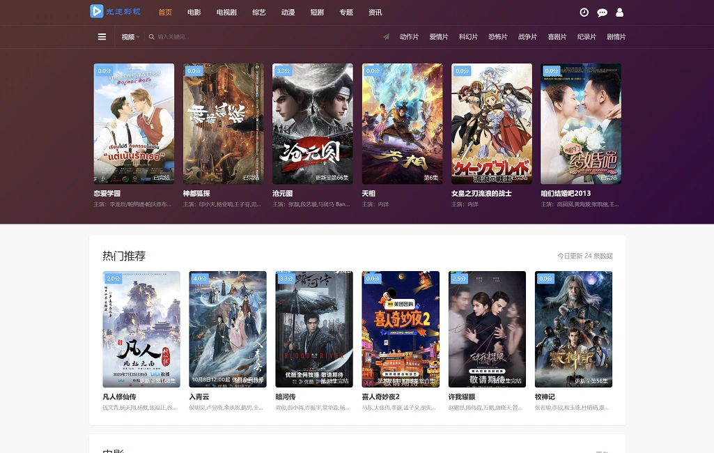 光速影视是一个以影视资源为主的网站,涵盖电影、电视剧、综艺、动漫、短剧、专题、资讯等多个类别,内容分类细致、展示形式丰富。主页设有热门推荐、最新更新、导航栏目齐全。