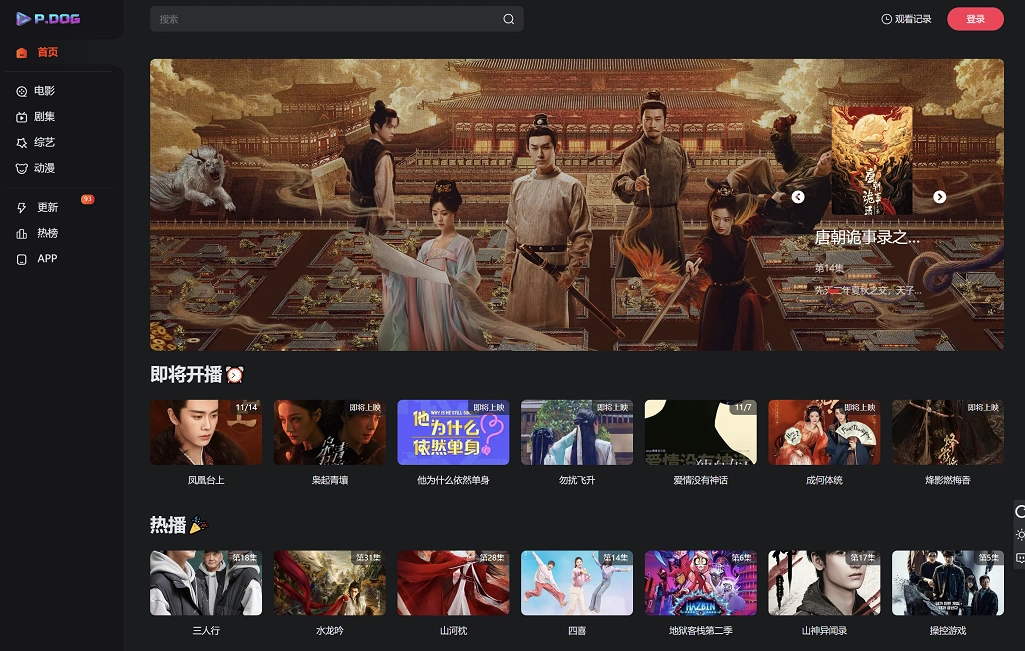 - 页面顶部还有“观看记录”“我的观影记录”“登录”等栏目。