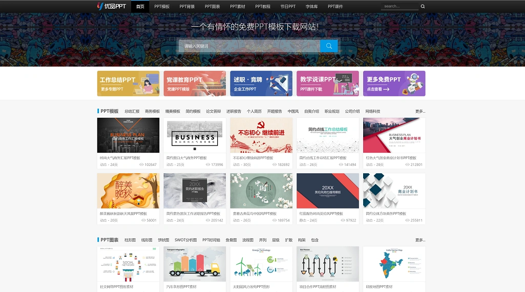 优品PPT是一个专注于免费分享PPT模板与素材 的中文网站,成立并运营多年,目标是为需要制作幻灯片的用户提供一站式资源(模板、背景、图表、素材、教程等)。多数第三方介绍与收录页面都把它列为“全免费、资源丰富”的 PPT 模板站之一。