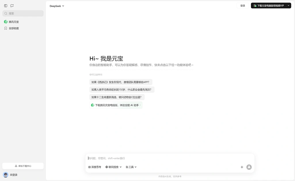 - 你可以通过浏览器直接访问官网网址:https://yuanbao.tencent.com,无需先安装 APP,就能使用网页版功能。
